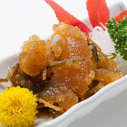 塩数の子(数の子(オランダ産・ドイツ産・その他))、するめいか、昆布、醤油、食塩、醗酵調味料/ソルビトール、調味料(アミノ酸等)、pH調整剤、増粘多糖類、保存料(ソルビン酸K)